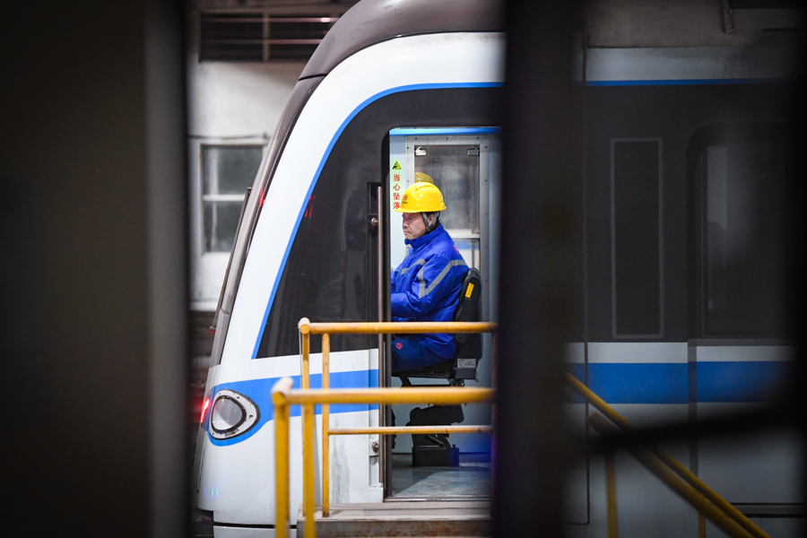 地铁维保车辆专业人员正在进行司机室检查。