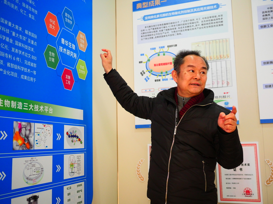 走进魏东芝所在的鲁华生物技术研究所主楼,从上层到底层的实验室5个楼层分布,恰好对应着生物制造上、中、下游的各关键环节,为整个绿色制造流程加注了“中国芯”。