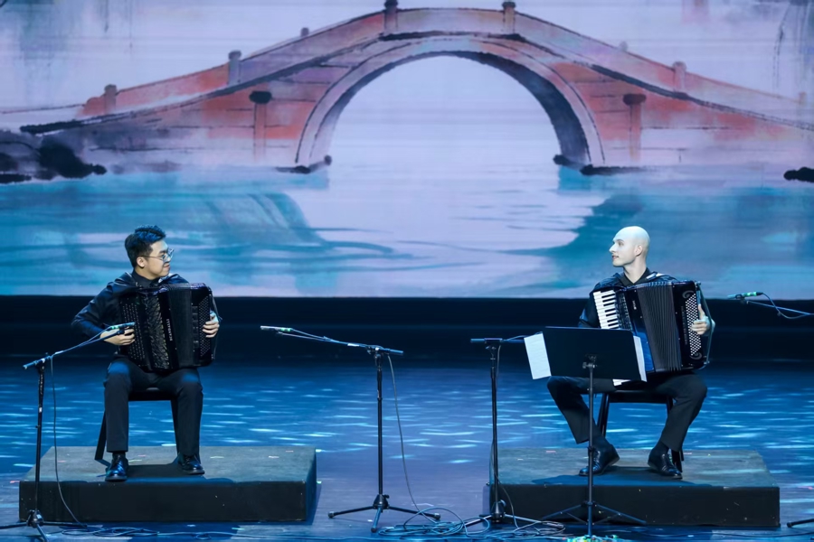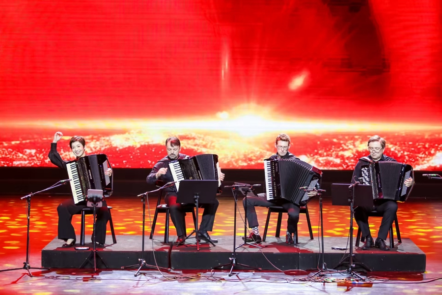 献技结果后,不少不雅众仍千里浸在琴声中。从浦东专程赶来的手风琴深爱者聂先生惊叹:“每年的盛典音乐会我齐会来,本年的节目太丰富了。那首《江南好》印象很是深,用手风琴演绎中国乐曲,别具一格。”带着男儿前来不雅演的刘女士暗示:“孩子正在学手风琴,思让他望望海外化、高端的献技。这样多宇宙级演奏家同台,但愿能让他受到一些饱读动。”