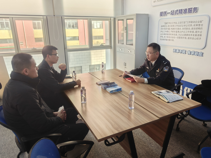 金山分局民警在“蓝鲸”护企职责站招待企业