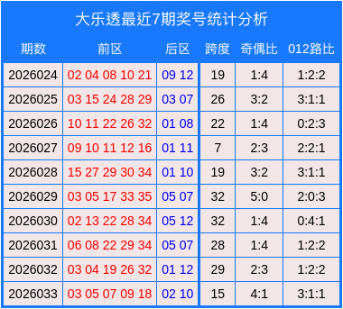开奖总结:大乐透第2026033期奖号为:03、05、07、09、18 + 02、10。
