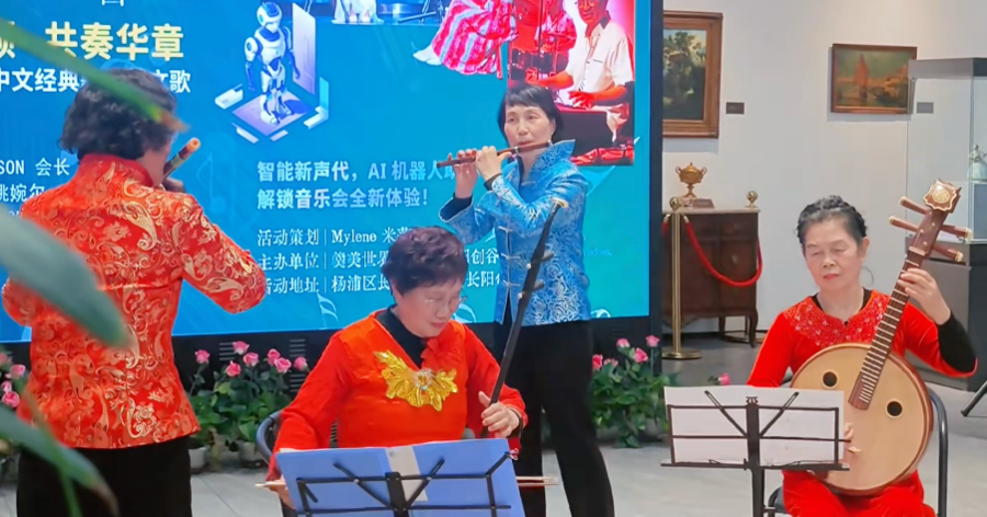 杨浦区大桥民乐团的登场,让中西乐声碰撞出别样的火花。古筝轻拨,旋律如活水潺潺;笛声澄清,乐声直抵东谈主心;二胡拉奏,揉出东方极端的暖热;中阮弹拨,余韵悠长。及第民乐的端淑,相见法国民间音乐的强烈,让在场的东谈主都深深烂醉。