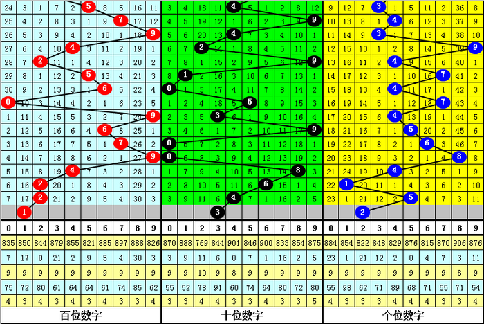 百位推选:上期开出号码2,为小 号、偶数、2路号码,该位前7期大小比为4:3,小 号出现较少,本期注目回补;
