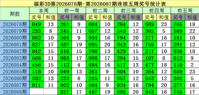 老梁福彩3D第2026088期概括推选: