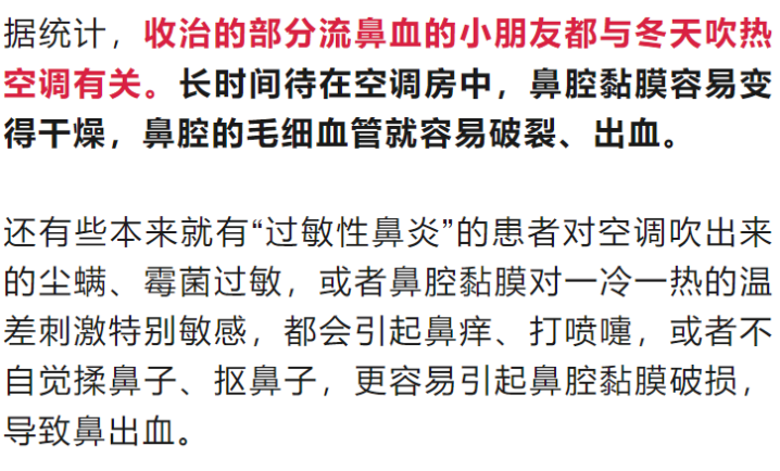 大夫:好多小一又友流鼻血王人与吹热空调研讨