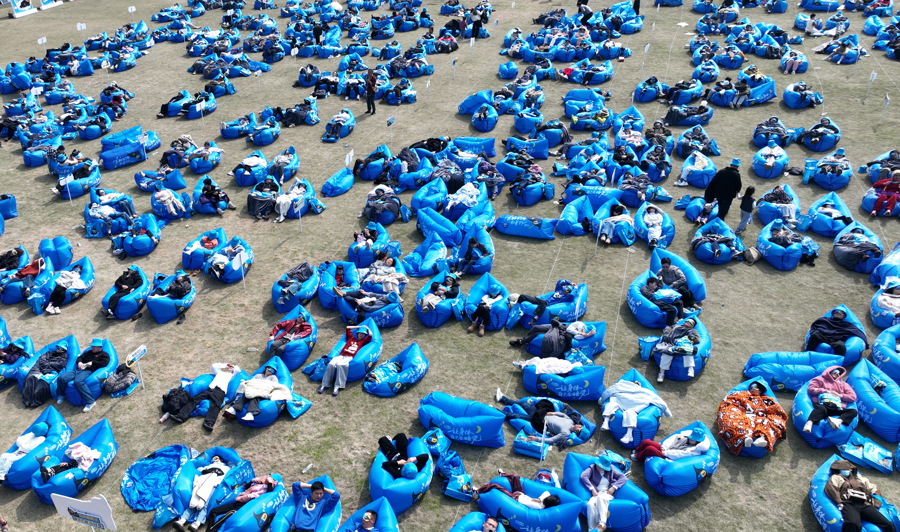 3月21日是第26个天下就寝日,当六合午,一场别开生面的就寝挑战赛在德清莫干山外洋旅游度假区郡安里的草坪上暖热启幕。一千张蓝色充气沙发整都摆设,现场莫得传统赛事的垂危与喧嚣,只好山野清风相伴的宁静与酣畅。在这里,莫得速率与力量的比拼,独一的“竞技”,即是谁能更快磨叽、更好入眠。